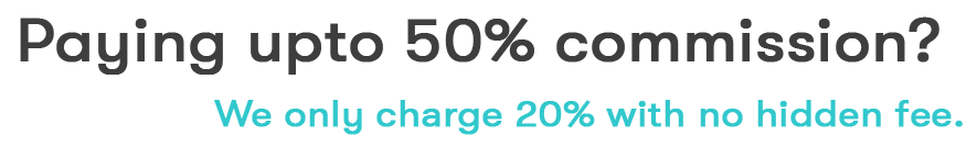 We only charge 20% with no hidden fee.